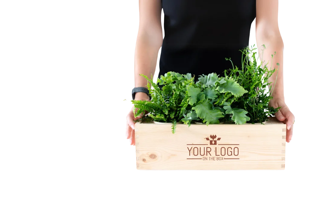 What makes our personalised corporate gifts unique compared to a standard gift is the sustainable, environmentally friendly and convenient 3-in-1 concept of each BloomsBox. The box in which the plants are beautifully displayed also serves as shipping packaging. This allows us to save on packaging materials and ship the plants safely. The Box also has a built-in water reservoir that ensures, in a low-maintenance way, that the plants always get just enough water. Finally, the BloomsBox is very convenient for the recipient who, after receiving it, only has to hang the plants in the lid to let them shine.