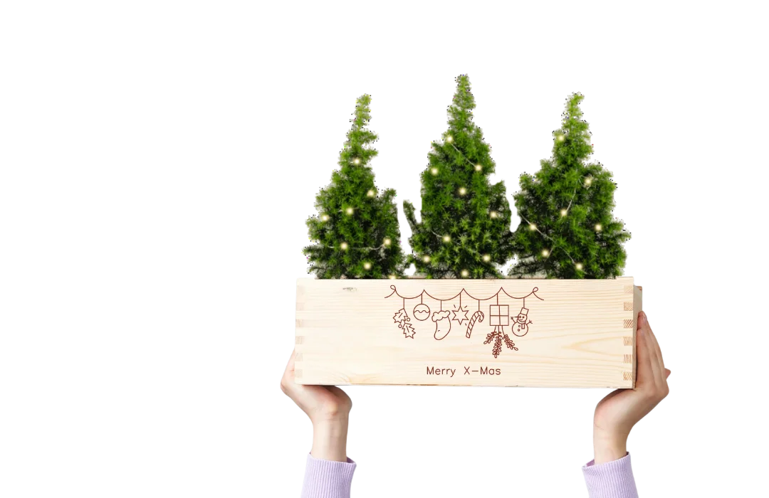 The Xmas out of the Box consists of 3 Christmas trees and various extra options, such as lighting, Christmas decorations and culinary delights. We offer this BloomsBox in the Large and Extra Large version. All BloomsBoxes for Christmas contain Christmas lights and/or wooden Christmas decorations. The recipient of this sustainable Christmas gift fills the BloomsBox with water, hangs the Christmas trees in the lid and can then decorate the trees themselves with the included lights and decorations. Whichever BloomsBox you choose; with this original Christmas gift , your relations and colleagues are guaranteed to immediately get into the Christmas mood!